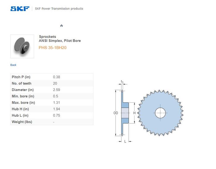 - SKF - 35-1 ASA(3/8) SPROCKET 20 TEETH 1 ROW