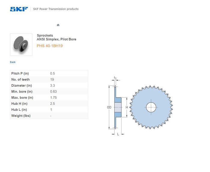 - SKF - 40-1/40H ASA(1/2) SPROCKET 19 TEETH 1 ROW