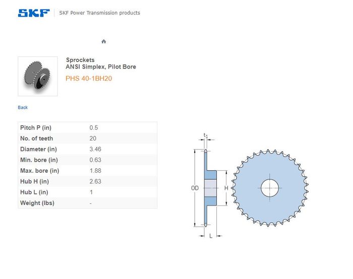 - SKF - 40-1/40H ASA(1/2) SPROCKET 20 TEETH 1 ROW
