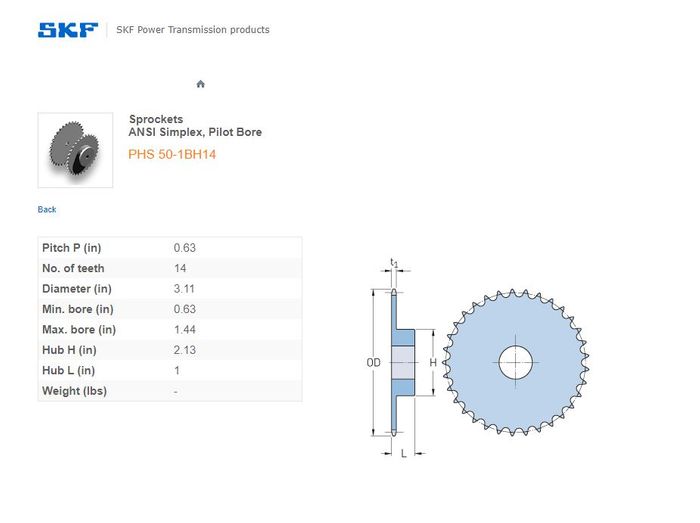 - SKF - 50-1/50H ASA(5/8) SPROCKET 14 TEETH 1 ROW