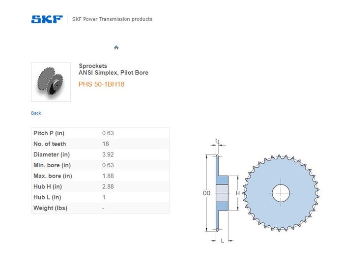 - SKF - 50-1/50H ASA(5/8) SPROCKET 18 TEETH 1 ROW