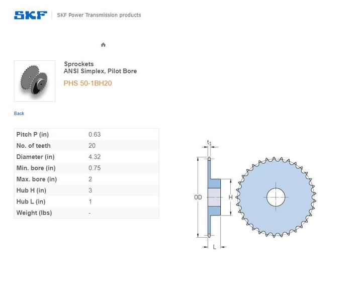 - SKF - 50-1/50H ASA(5/8) SPROCKET 20 TEETH 1 ROW