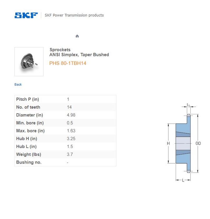 - SKF - 80-1/80H ASA(1 Inch) SPROCKET 14 TEETH 1 ROW