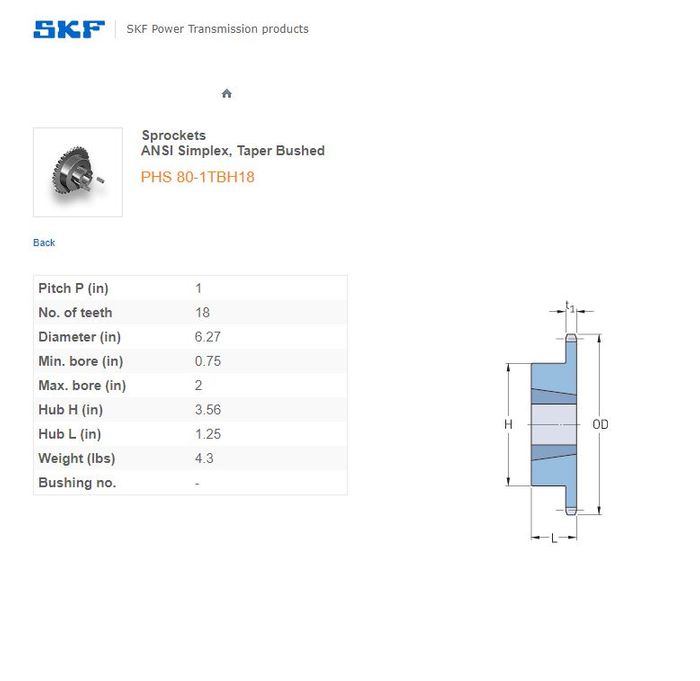 SKF - 80-1/80H ASA(1 Inch) SPROCKET 18 TEETH 1 ROW