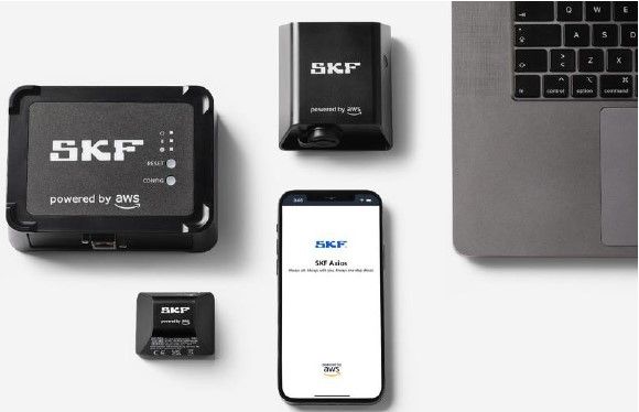 SKF Axios is a simple, wireless and scalable end-to-end predictive maintenance solution from SKF and Amazon Web Services (AWS). It collects and analyzes vibration and temperature data to detect equipment anomalies and provide notifications on the health of your machinery.
