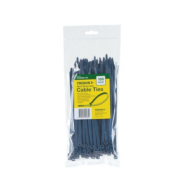 - Manufactured for the food, beverage, pharmaceutical and medical processing industries, Tridons Metal Detectable Cable Ties feature a food safe metal additive which is dispersed evenly throughout the entire body of the cable tie. Thanks to this complete dispersion, even small pieces of these cable ties will be detected by correctly calibrated metal detection systems.