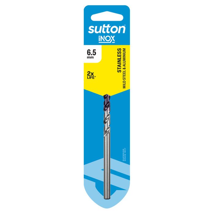 Sutton D1850650 6.5mm Inox Jobber Drill Bits - DIN338 Carded - HSS TiAlN