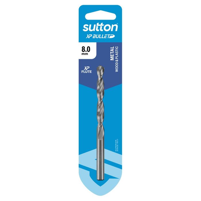 Sutton 8.0 x 117mm HSS Bright XP Bullet Carded Jobber Drill Bit - D220H0800