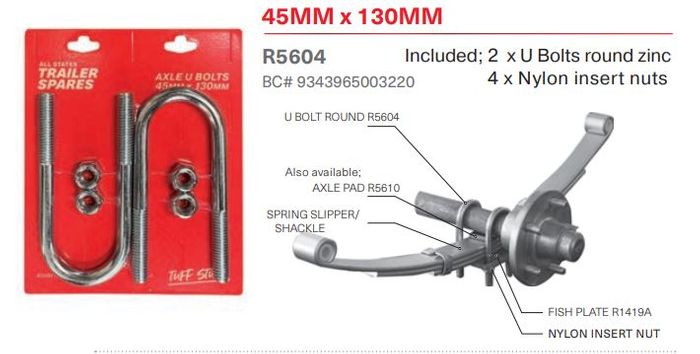 U Bolt 45mmx130mm Round inc Nut (2 per pack)