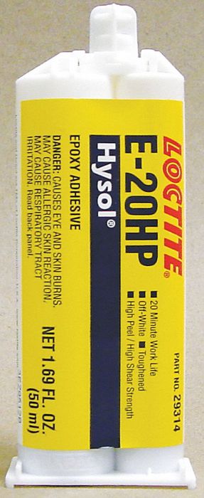 LOCTITE® EA E-20HP is an off-white, 2-part, toughened, medium-viscosity, industrial grade epoxy adhesive with a medium work life. The mixture cures at room temperature to form a tough bondline with high peel resistance and high shear strengths. It is resistant to a wide range of chemicals and solvents and is an excellent electrical insulator.