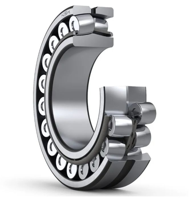 NSK Spherical roller bearings are available in EA, C, CD, and CA types designed for high load capacity. Types EA, C, and CD have pressed steel cages, while CA uses machined brass cages. All EA types are high-performance standard NSKHPS Series bearings.