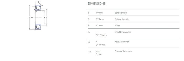 90.00 mm ID x 190.00 mm OD x 43.00 mm Width