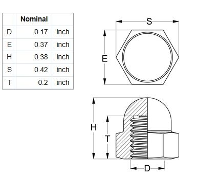 Also known as: Crown Nut, Blind Nut, Dome Cap Nut, Hex Cap Nuts, Acorn Nuts