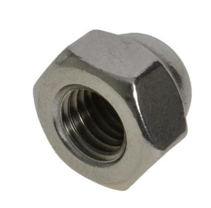 Hex dome nuts can be used independently or as a cap over a hex or jam nut to conceal the exposed sharp threaded end of a fastener. They are also used for their decorative finish. Some varieties are made from two pieces that are pressed together. They may also be machined from a single piece of metal. Apart from minor dimensional differences, both types function the same way.