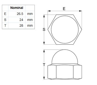Dome 2pc Hex Nut - 304 Stainless Steel - M16 (Box=50)