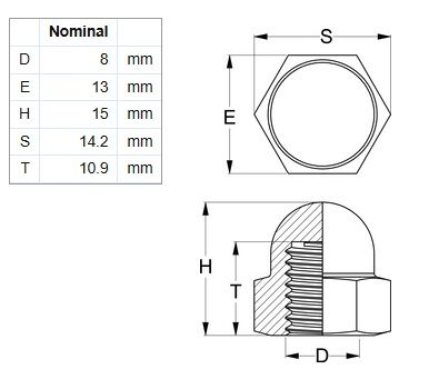 Also known as: Crown Nut, Blind Nut, Dome Cap Nut, Hex Cap Nuts, Acorn Nuts