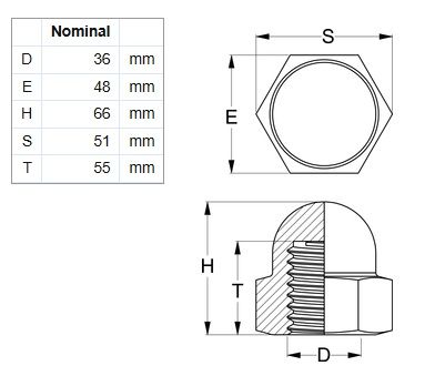 - Dome Hex Nut - 316 SS - M36 (Box=10)