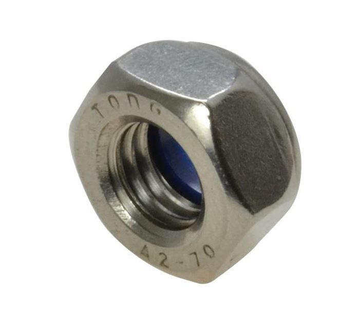 Hex Nyloc Insert nuts is hex shaped, internally threaded with a nylon insert. The nylon material prevents loosening from vibration and cross threads to stop the nut from backing off of the fastener. The insert deforms elastically over the threads of the screw, but threads are not cut into the nylon. The nylon insert locks the nut in two ways. First, it forces the bottom face of the screw threads against the top face of the nut threads, increasing the friction between the two. Second, the nylon applies a compressive force against the screw itself. They can also be used to assist sealing the bolt thread against seepage of oil, water, petrol, paraffin and other liquids.They come in a variety of materials