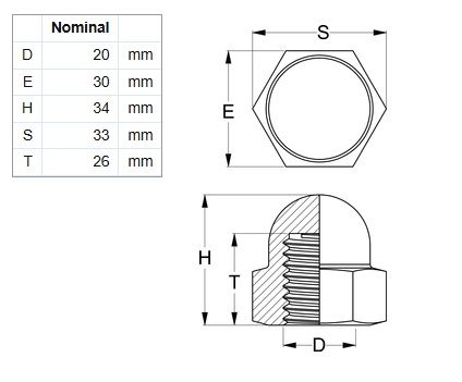 - Dome Hex Nut - 316 SS - M20 (Box=25)